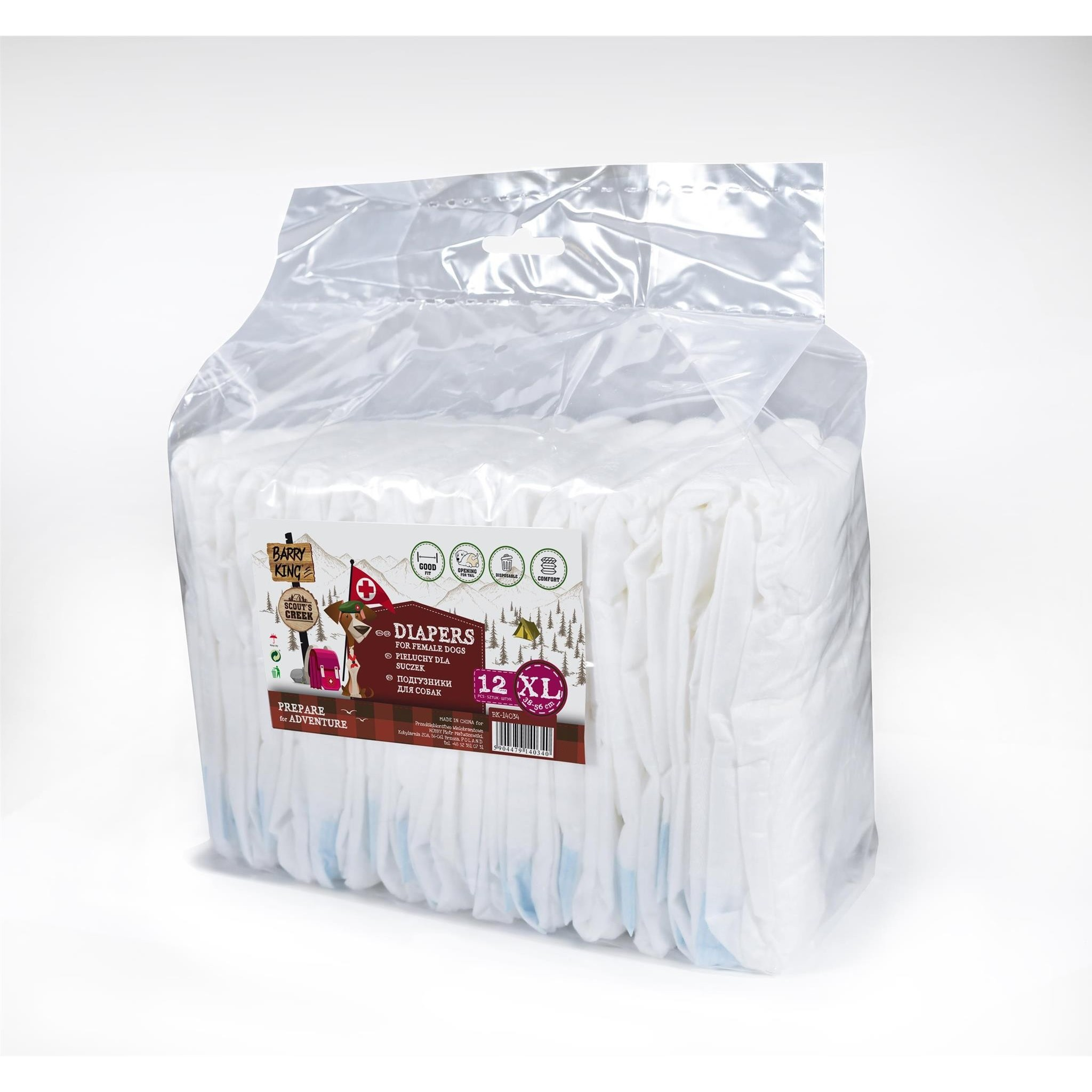 Pieluchy dla suszek XL o obwodzie pasa 38-56cm pomogą utrzymać czystość w domu i przydadzą się w wielu różnych sytuacjach. Pieluchy jednorazowe pomagają dbać o czystość, kiedy pies cierpi na nietrzymanie moczu, ale także mogą okazać się niezastąpione po operacjach lub w podróży. Pieluchy są bardzo chłonne i świetnie absorbują płyn. Można je błyskawicznie założyć i zdjąć. Aby to zrobić, po prostu użyj zapięć samoprzylepnych. Pieluchy są wyposażone w elastyczne wstawki, które pozwalają dopasować produkt do psa i zapewniają wysoki komfort noszenia. Produkt jest całkowicie bezpieczny i nie powoduje odparzenia.