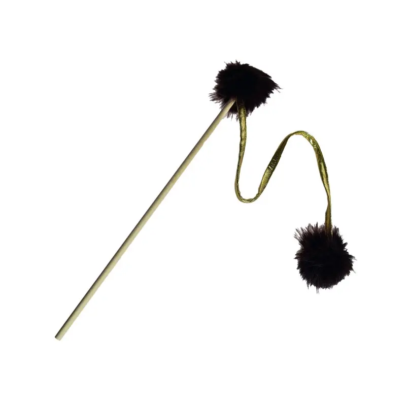 Wędka dla kota z dwoma pomponami. Puszyste pomponki na sznurku z pewnością zainteresują Twojego zwierzaka i zapewnią mu długie godziny zabawy. Idealne do polowania i tarmoszenia!