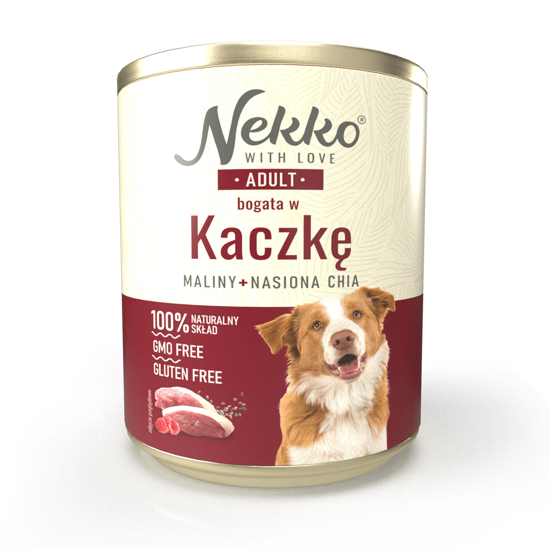 NEKKO puszka pies ADULT bogata w kaczkę, maliny + nasiona chia 800g