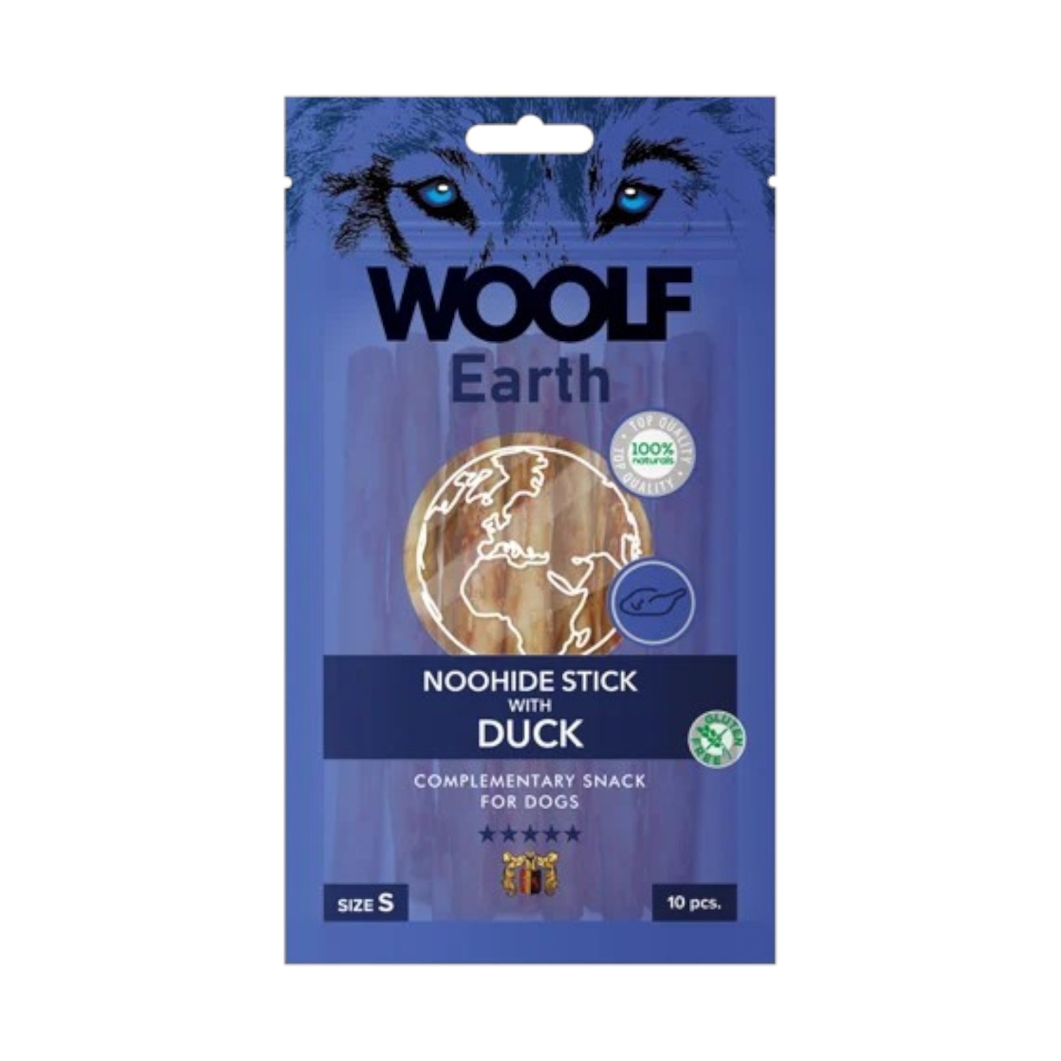 WOOLF EARTH NOOHIDE to przysmaki w kształcie podłużnych, twardych pałeczek z żelatyny z dodatkiem mięsa. Nie zawierają w swoim składzie skóry wołowej, która często jest wymieniana jako jeden z powodów rezygnacji z tego typu przekąsek (strach przed zadławieniem). Smakołyki występują w kilku wariantach smakowych oraz w różnych rozmiarach w celu jak najbardziej trafnego dopasowania ich wielkości do konkretnego psa. Idealne jako forma przekąski do nieco dłuższego żucia.