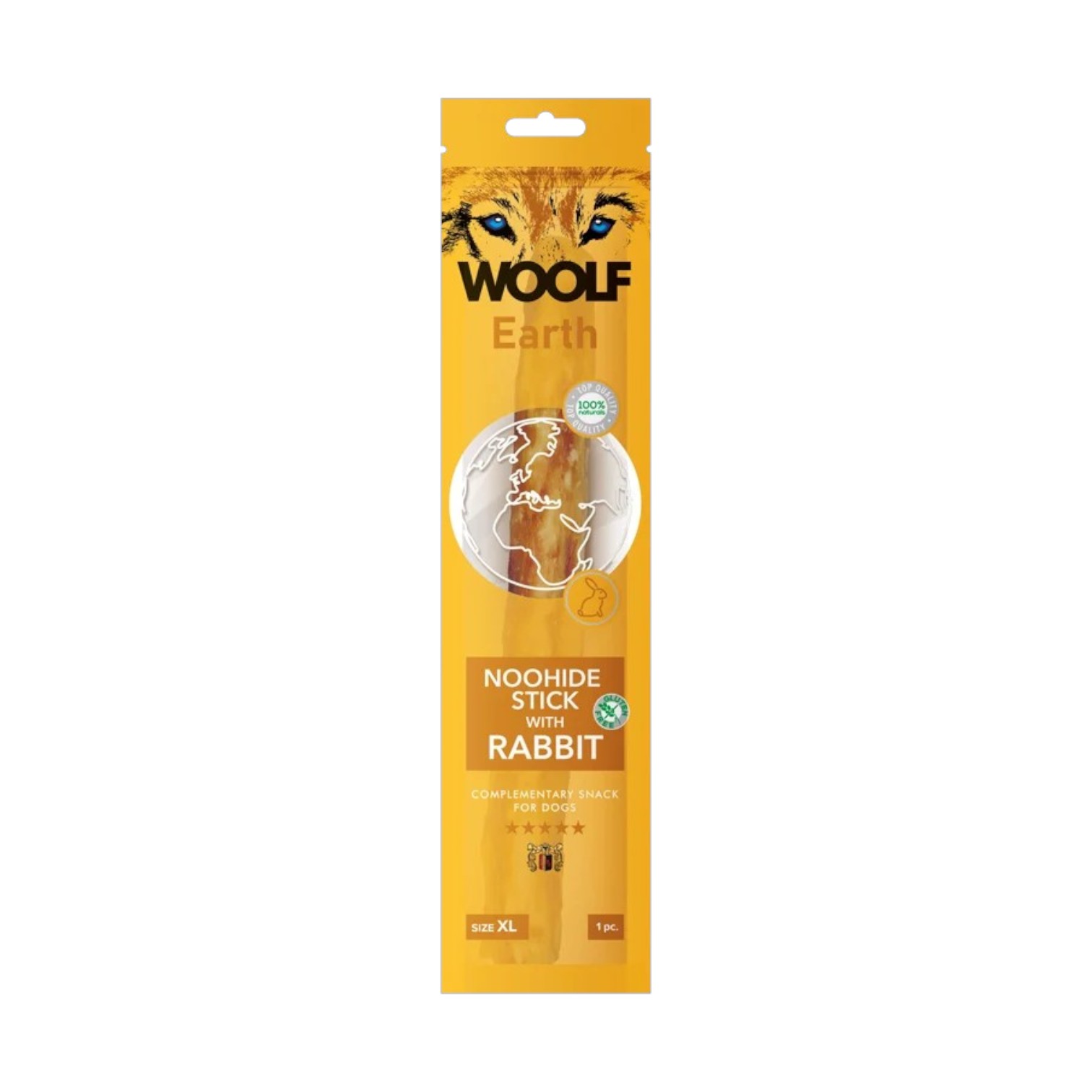 WOOLF EARTH NOOHIDE to przysmaki w kształcie podłużnych, twardych pałeczek z żelatyny z dodatkiem mięsa. Nie zawierają w swoim składzie skóry wołowej, która często jest wymieniana jako jeden z powodów rezygnacji z tego typu przekąsek (strach przed zadławieniem). Smakołyki występują w kilku wariantach smakowych oraz w różnych rozmiarach w celu jak najbardziej trafnego dopasowania ich wielkości do konkretnego psa. Idealne jako forma przekąski do nieco dłuższego żucia.